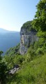 Départ après le Col de Gaudissart, à gauche dans une portion de route droite avant le belvédère et l'accès à la route taillée dans les falaises.